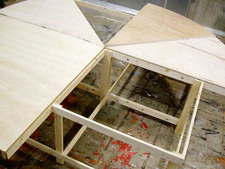 Arthur-King of the Britons Open air production by award winning Feelgood theatre productions ltd. Heaton park (Mcr) summer 06. Design/ build of ‘the round table’- (construction detail of 10’dia, hinged/ opening/ demountable structure).