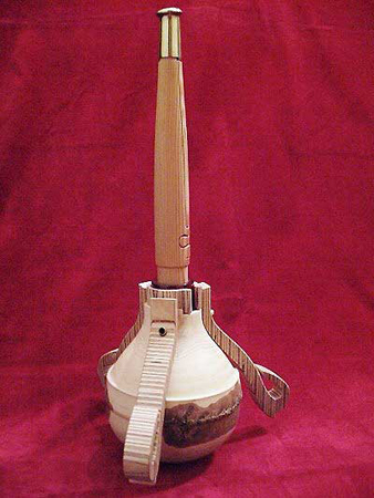 Applewood Ornamental sculpture. Ply, applewood sphere base, pine, Perspex, copper flute. 300mm high. 2004. Price upon request